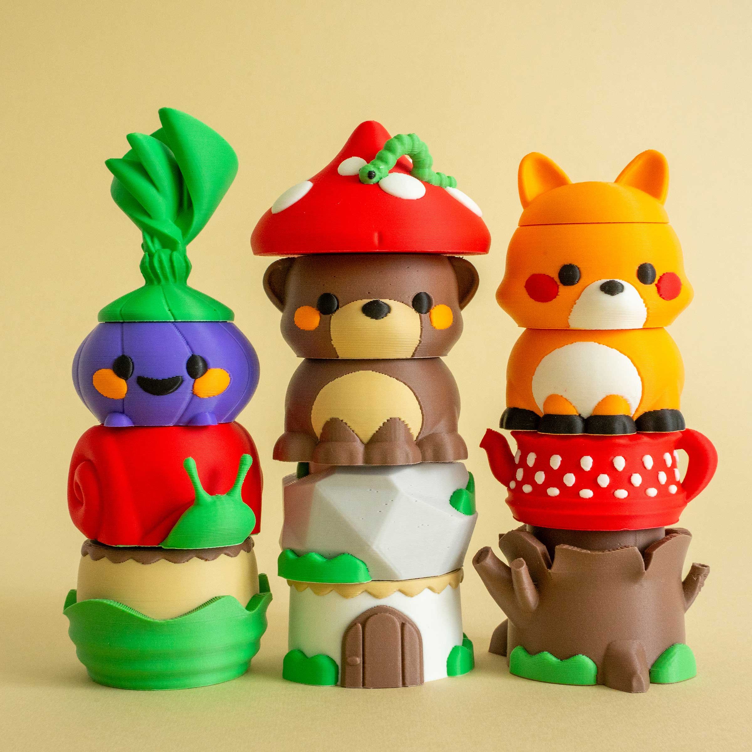 Compatible elements for building animals, characters, small scenes, towers, or custom combinations. Characters in the project are also based on this system — rounded shapes, clean parts, and mix-and-match possibilities.